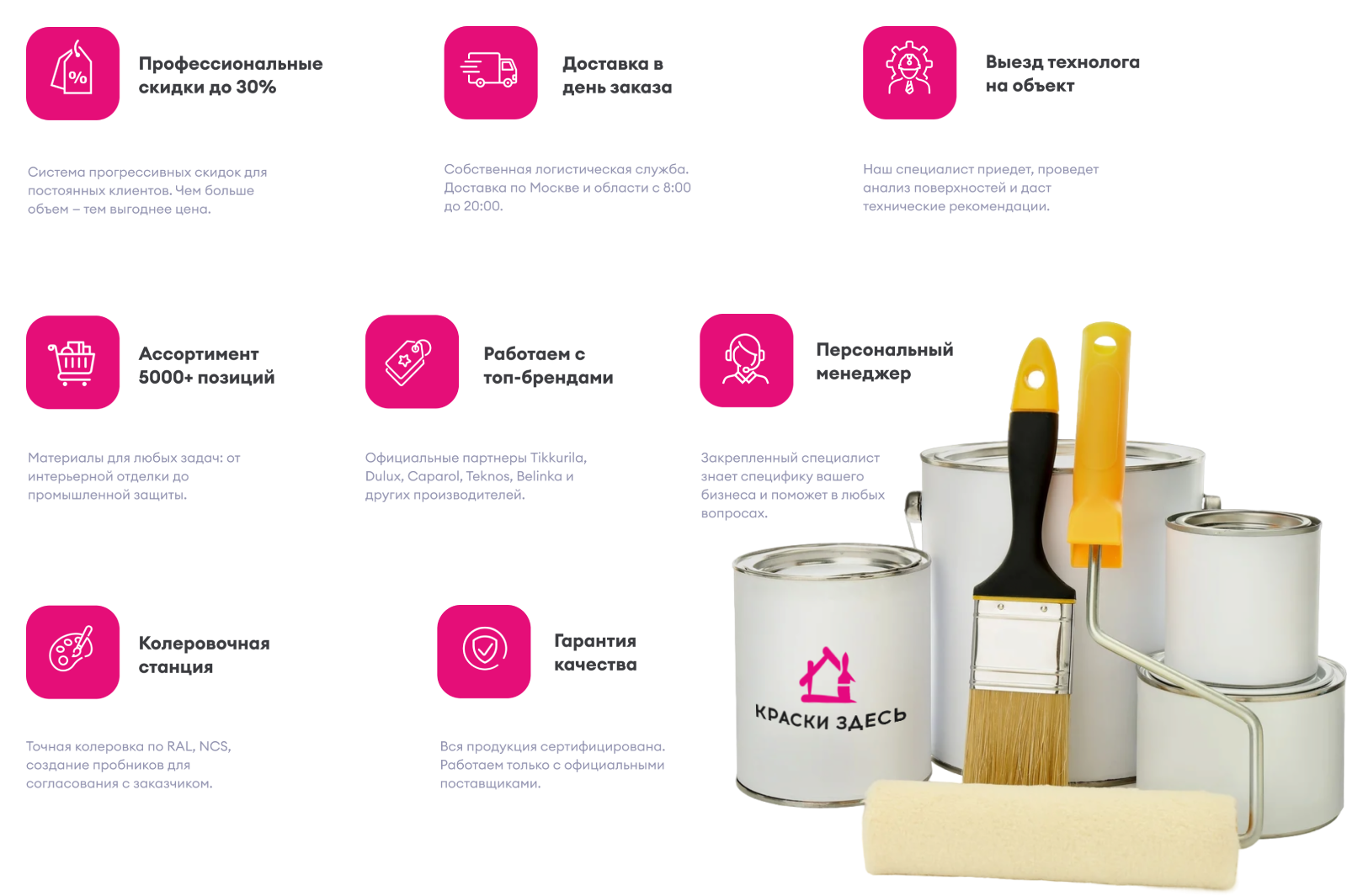 Официальные партнеры Tikkurila, Dulux, Caparol, Teknos, Belinka и других производителей.