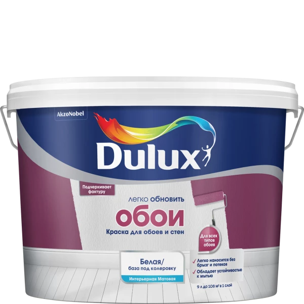 Товары под маркой DULUX от компании АкзоНобель мы рекомендуем использовать в следующих случаях. Для финишной отделки стен и потолков при проведении внутренних работ подойдут водоэмульсионные краски Dulux.