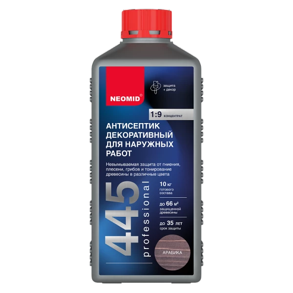 Neomid 433 концентрат для защиты древесины от гниения, плесени, грибков и жуков-древоточцев. Идеален для обработки наружных и внутренних деревянных поверхностей, а также для защиты деревянных конструкций.