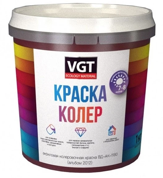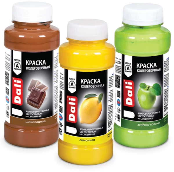 К примеру, группа компаний «Рогнеда» (Москва) производит колеровочные краски «Dali», которые обладают повышенной атмосферостойкостью и выдерживают температурные колебания в диапазоне от -40°С до +40°С. Не выгорают под воздействием солнечных лучей и имеют высокую степень сцепления с разными видами оснований.