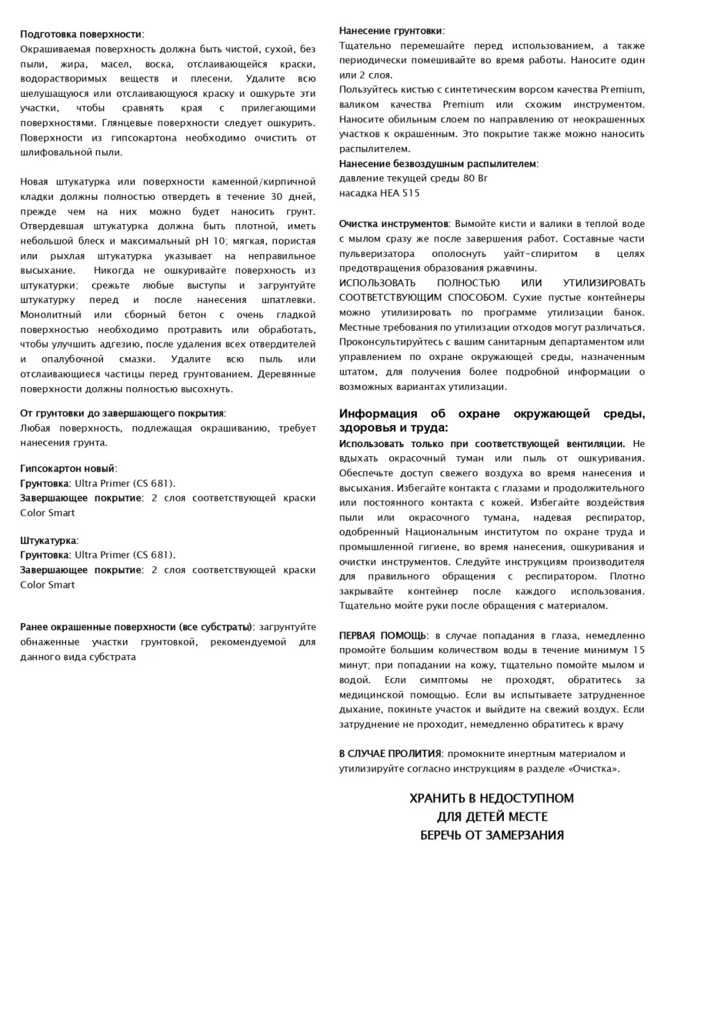 Окрашиваемая поверхность должна быть чистой, сухой, без пыли, жира, масел, воска, отслаивающейся краски, водорастворимых веществ и плесени. Удалите всю шелушащуюся или отслаивающуюся краску и ошкурьте эти участки, чтобы сравнять края с прилегающими поверхностями. Глянцевые поверхности следует ошкурить. Поверхности из гипсокартона необходимо очистить от шлифовальной пыли.