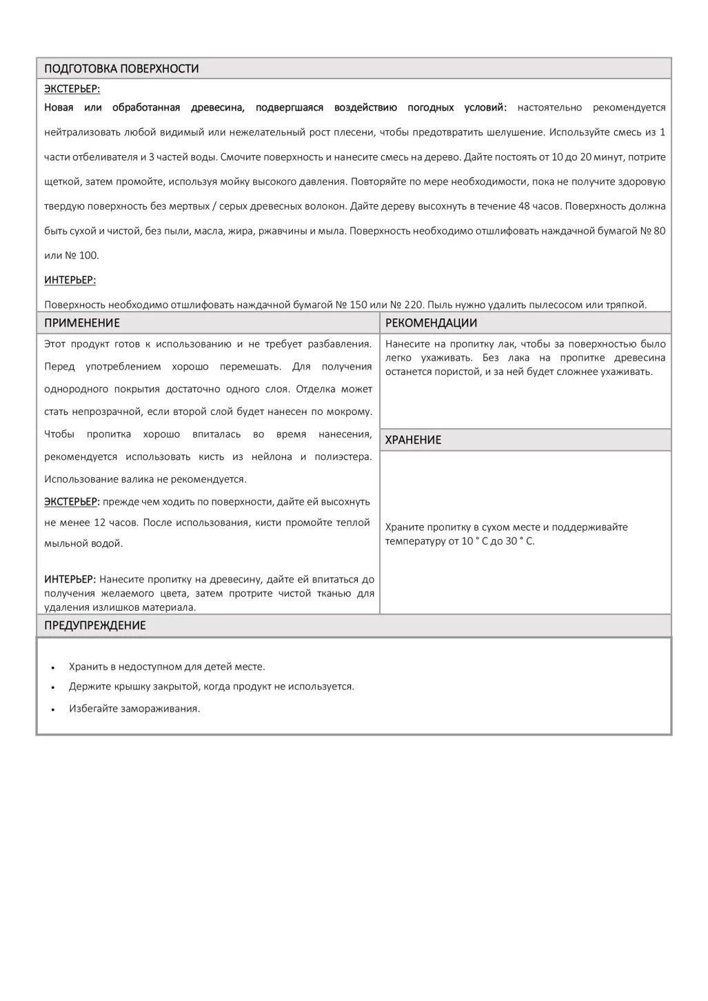 Внимательно ознакомьтесь с инструкцией, прежде, чем начать нанесение пропитки.