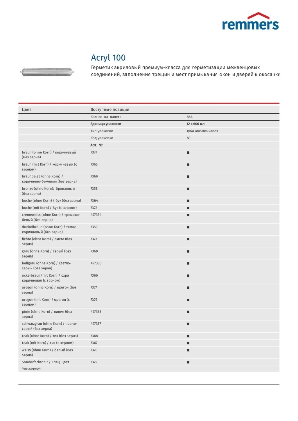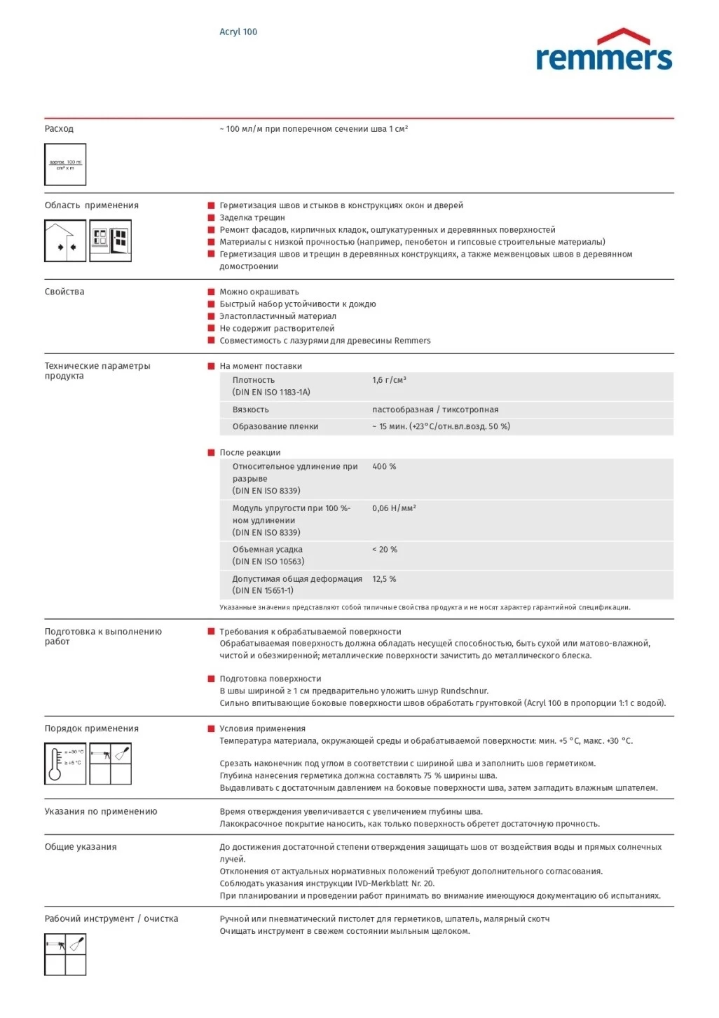 Remmers Acryl 100 Акрил герметик акриловый для дерева премиум-класса для герметизации и заполнения трещин, без зерна