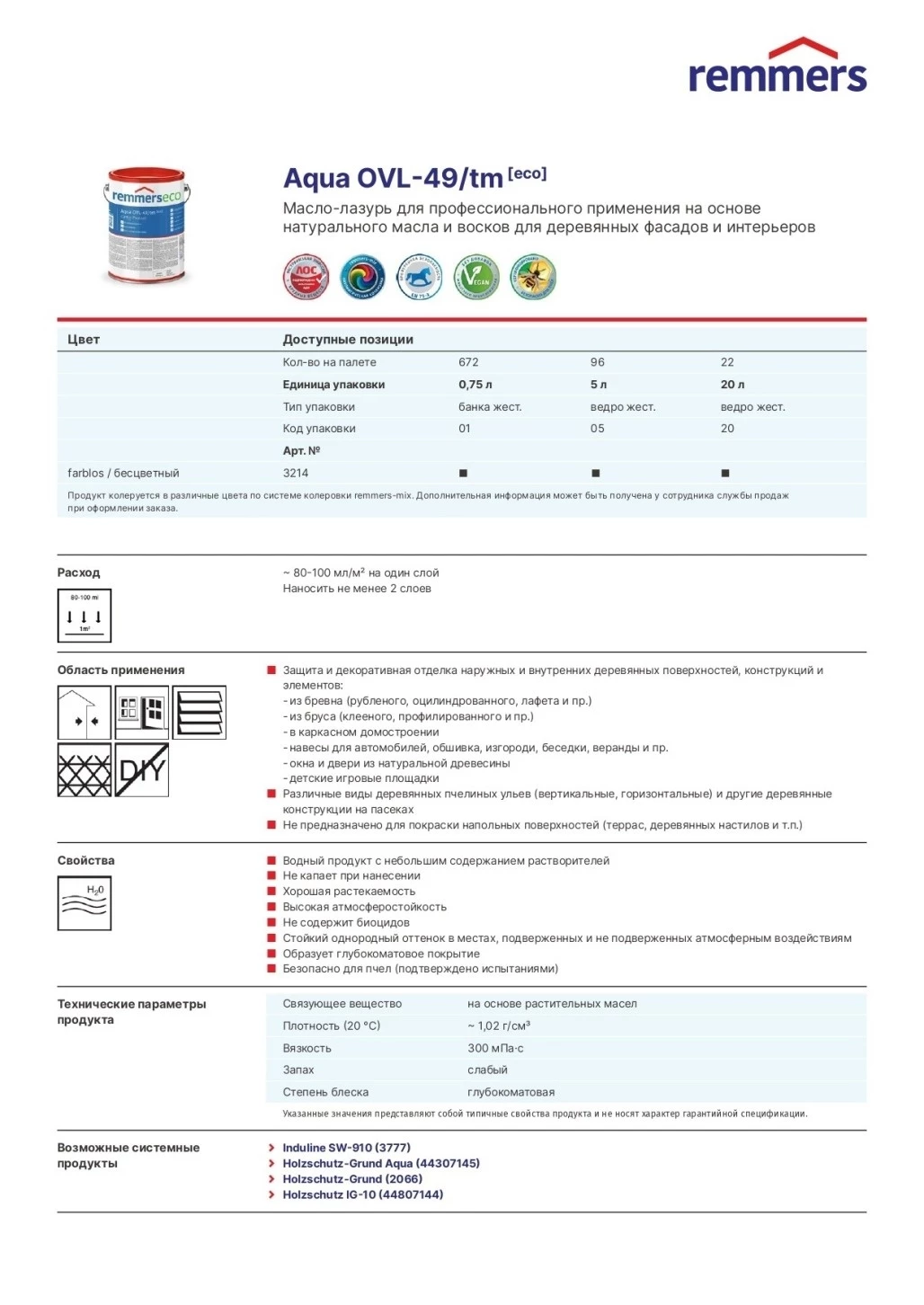 Remmers Aqua OVL-49/TM [ECO] Farblos Профессиональное масло-лазурь на основе натуральных компонентов с эффектом естественного посерения древесины