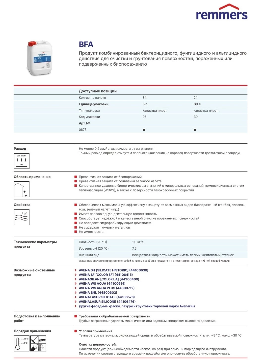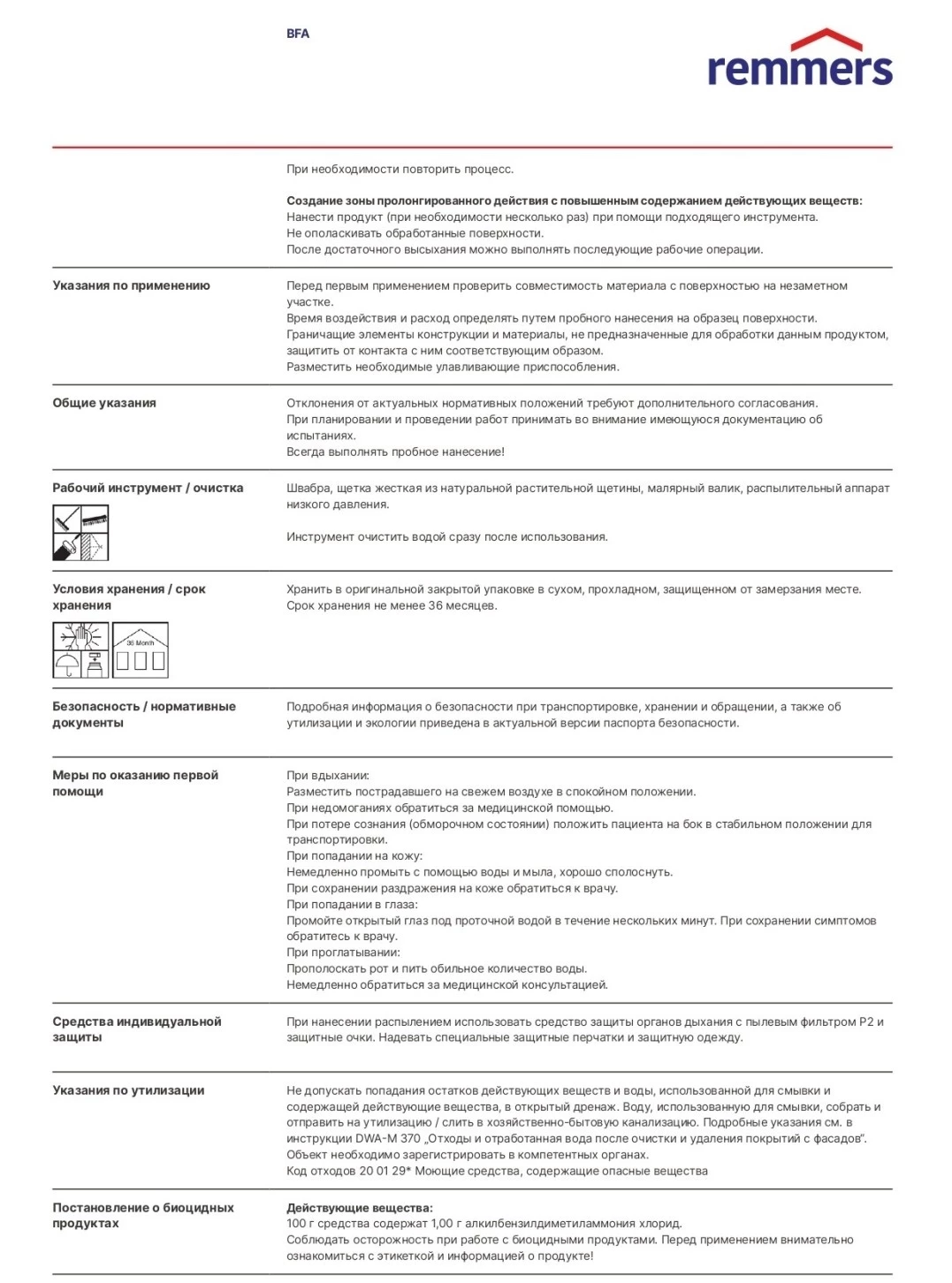 Remmers BFA Продукт комбинированный бактерицидного, фунгицидного и альгицидного действия для очистки и грунтования поверхностей, пораженных или подверженных биопоражению