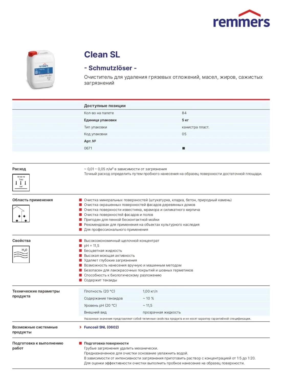 Remmers Clean SL Очиститель для удаления грязевых отложений, масел, жиров, сажистых загрязнений