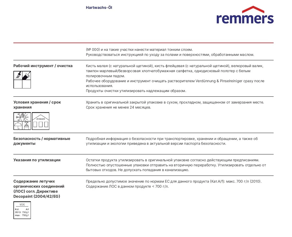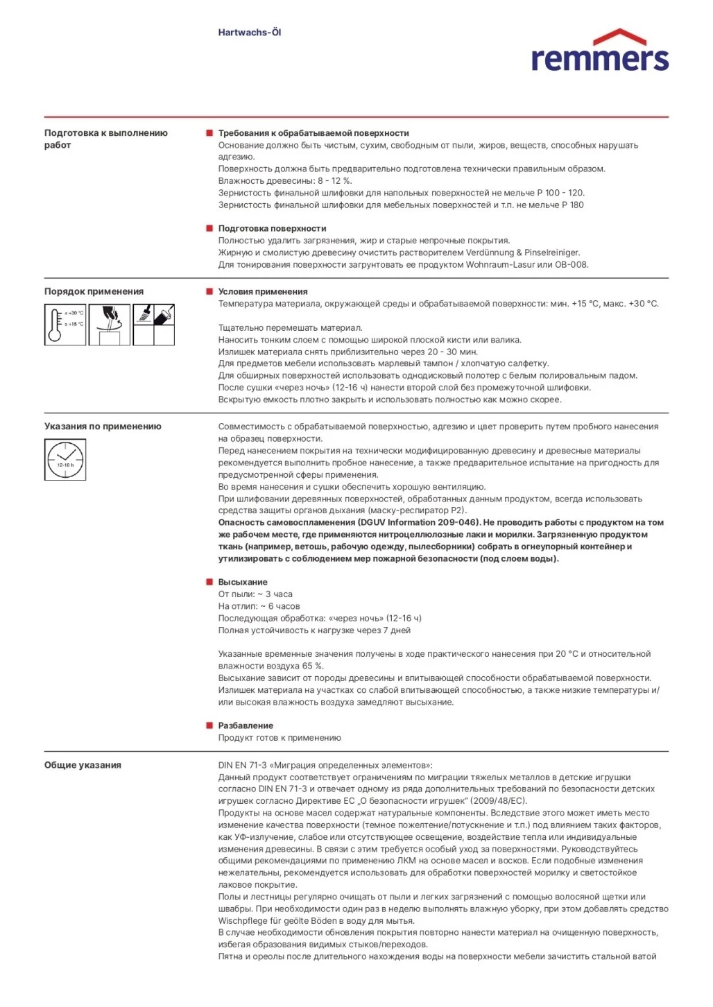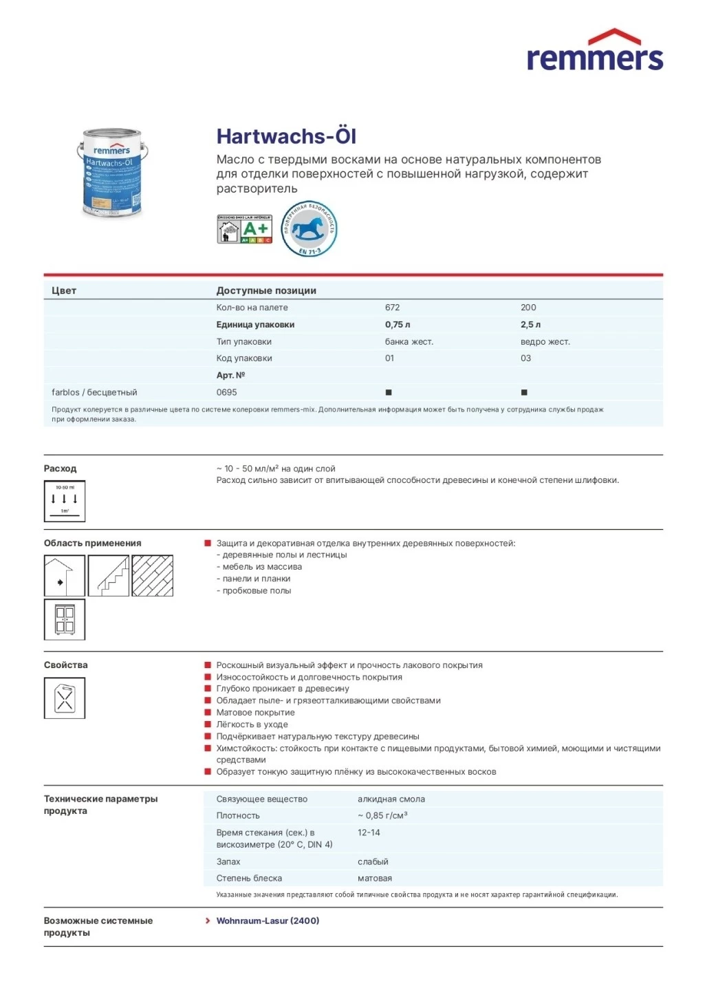 Remmers Hartwachs-Oel Масло с твердыми восками на основе натуральных компонентов для отделки поверхностей с повышенной нагрузкой
