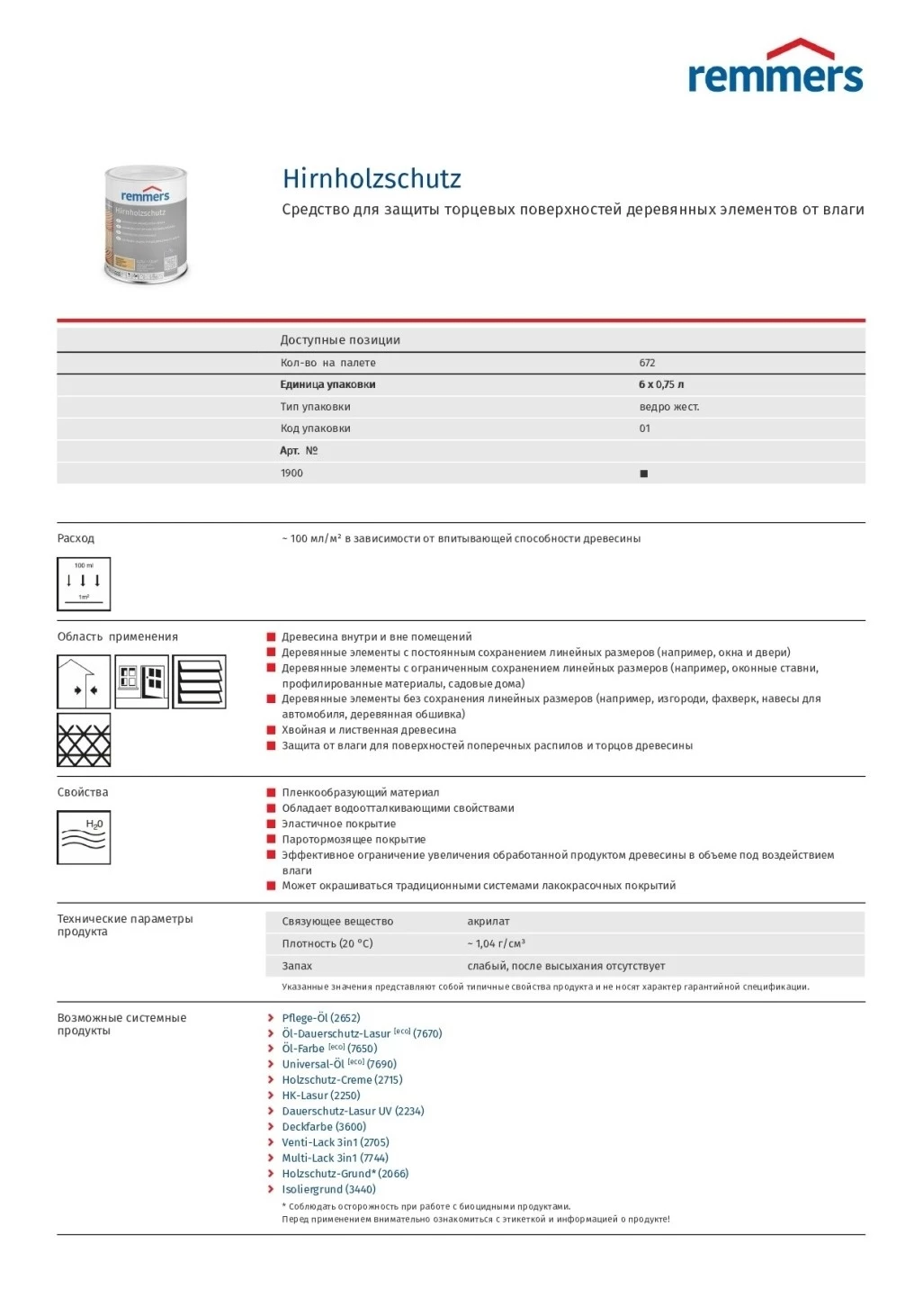 Remmers Hirnholzschutz Средство для защиты торцевых поверхностей деревянных элементов от влаги