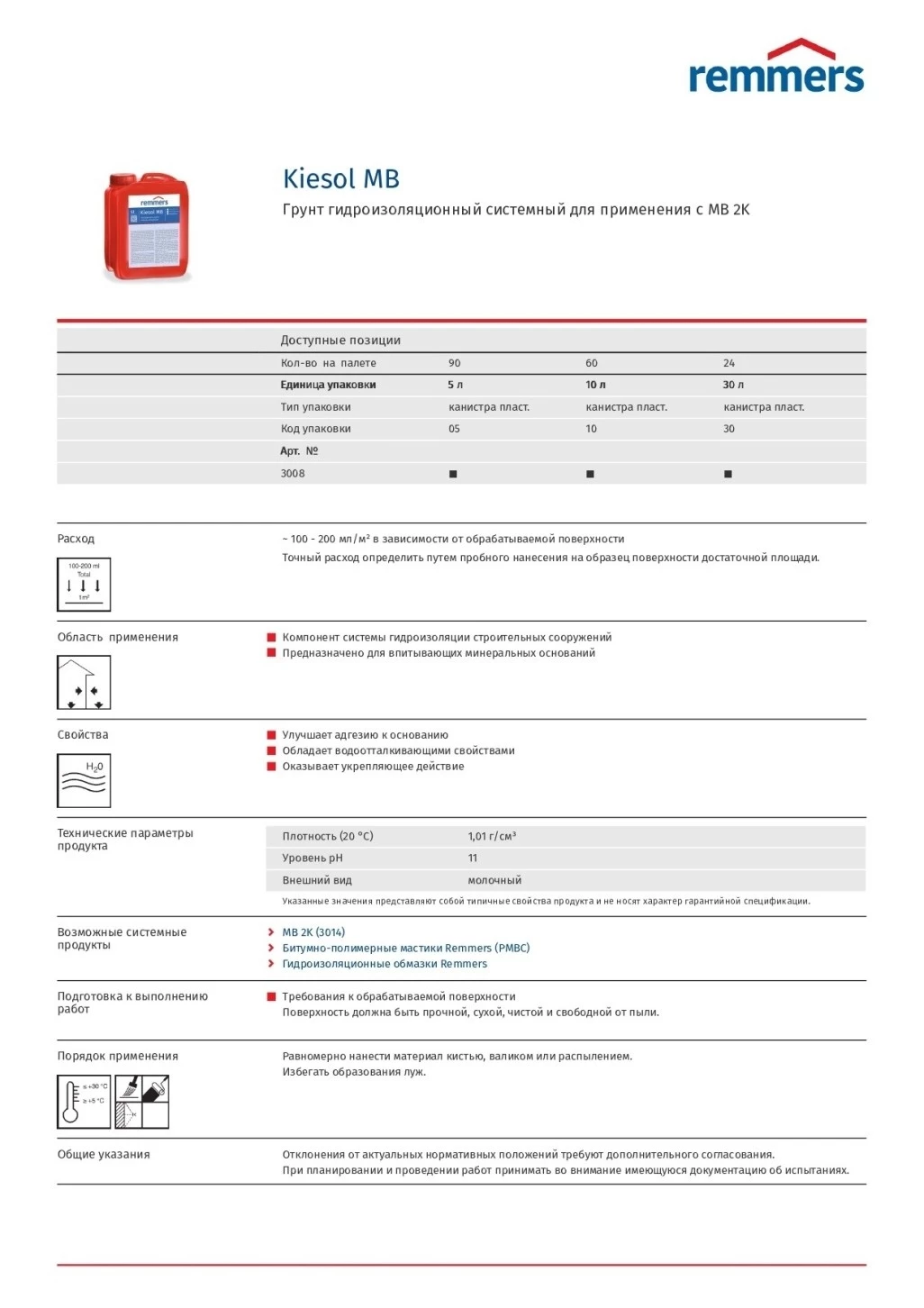 Remmers Kiesol MB Грунт гидроизоляционный системный для применения с MB 2K