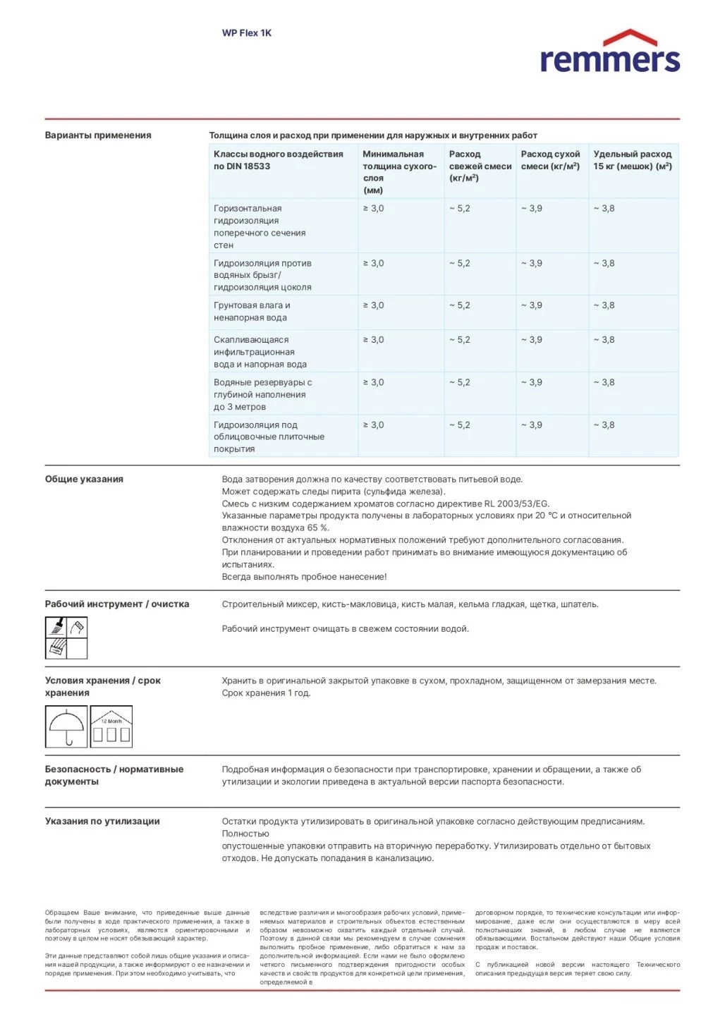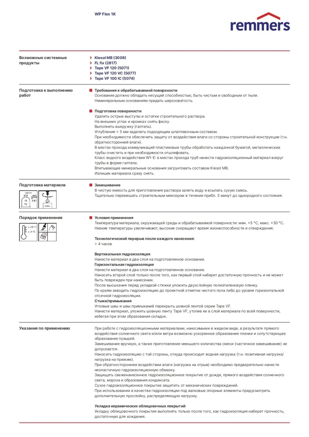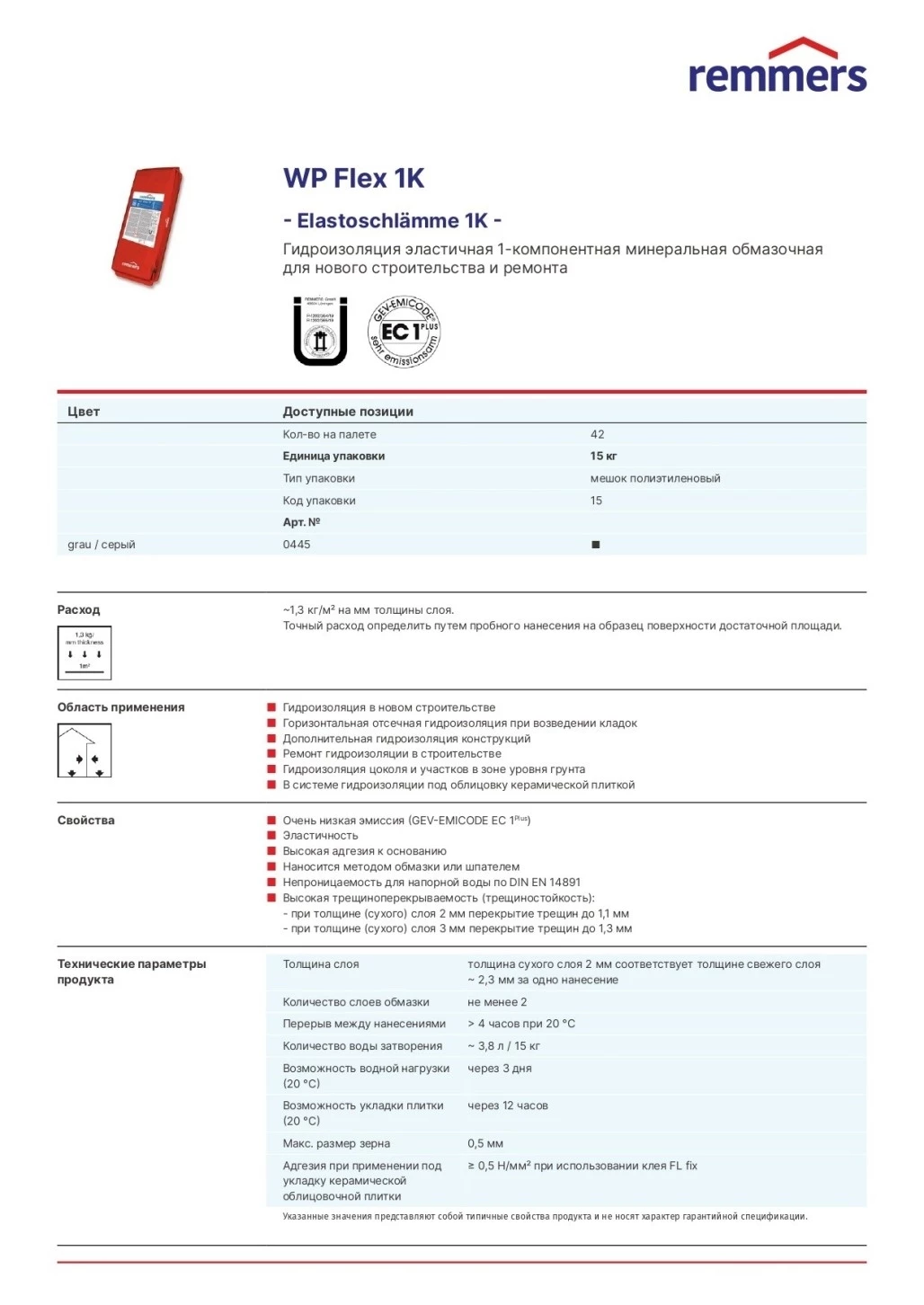 Remmers WP Flex 1K Elastoschlaemme Гидроизоляция эластичная 1-компонентная минеральная обмазочная для нового строительства и ремонта