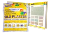 Перед нанесением жидких обоев очистите поверхности от грязи и пыли, а затем обработайте шпаклёвкой и загрунтуйте фирменным грунтом Silk Plaster в 2 слоя. В пластмассовую ёмкость налейте воду комнатной температуры из расчёта 6 л на один пакет. Каждую упаковку следует готовить отдельно, даже если их потребуется несколько для нанесения на одну поверхность. Встряхните содержимое пакета, чтобы сыпучая смесь распределилась равномерно, и высыпьте её в емкость с водой. Пакет лучше замешивать целиком, так как при использовании части пакета связующие компоненты в ней могут отсутствовать в нужной концентрации, что приведёт к нежелательным результатам. Во избежание образования сгустков клея тщательно перемешайте смесь вручную не менее 10 минут и оставьте замачиваться на 12 часов. Использовать дрель с миксерной насадкой можно лишь на малых оборотах, чтобы не повредить структуру декоративной штукатурки. Готовую смесь наносите при помощи пластиковой кельмы от угла помещения, дверного проема или окна до противоположного угла. Для достижения идеально однородной поверхности, обои следует разгладить текстурным валиком, предварительно смочив его водой. Держите тёрку к материалу под углом 10-15 градусов, образуя клин, выдерживая оптимальную толщину слоя 1,5-2 мм. Через 1-2 часа, разгладьте поверхность тёркой, смоченной в воде.