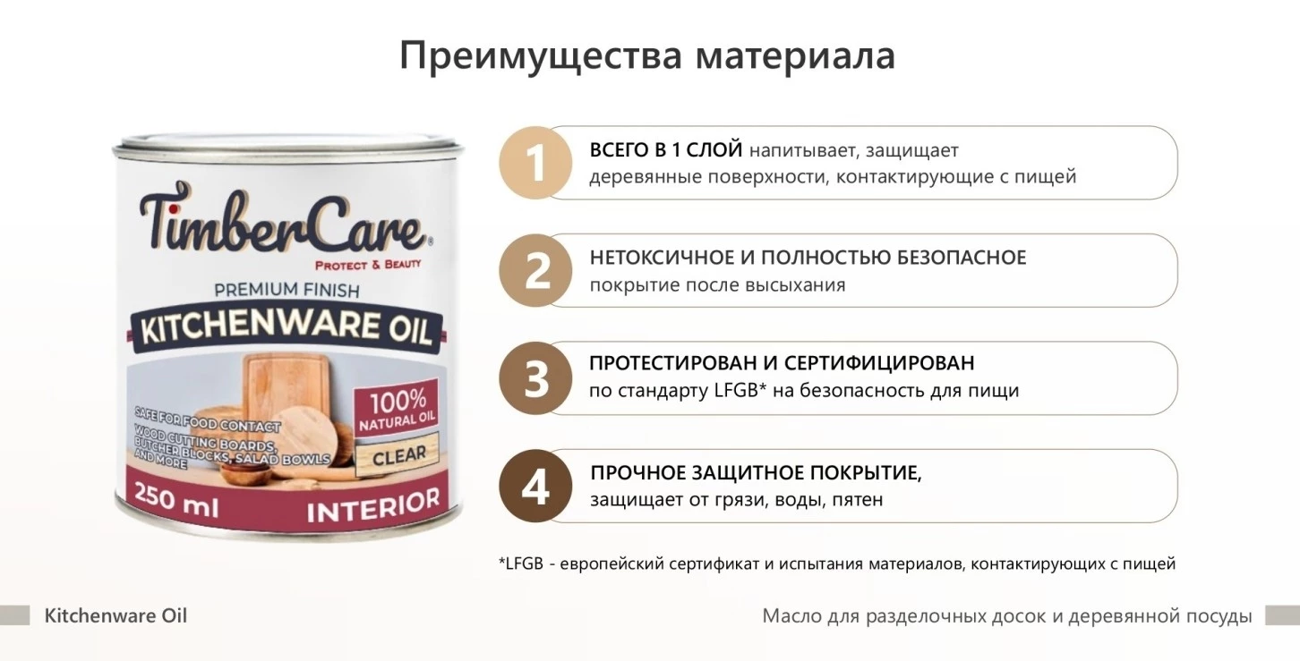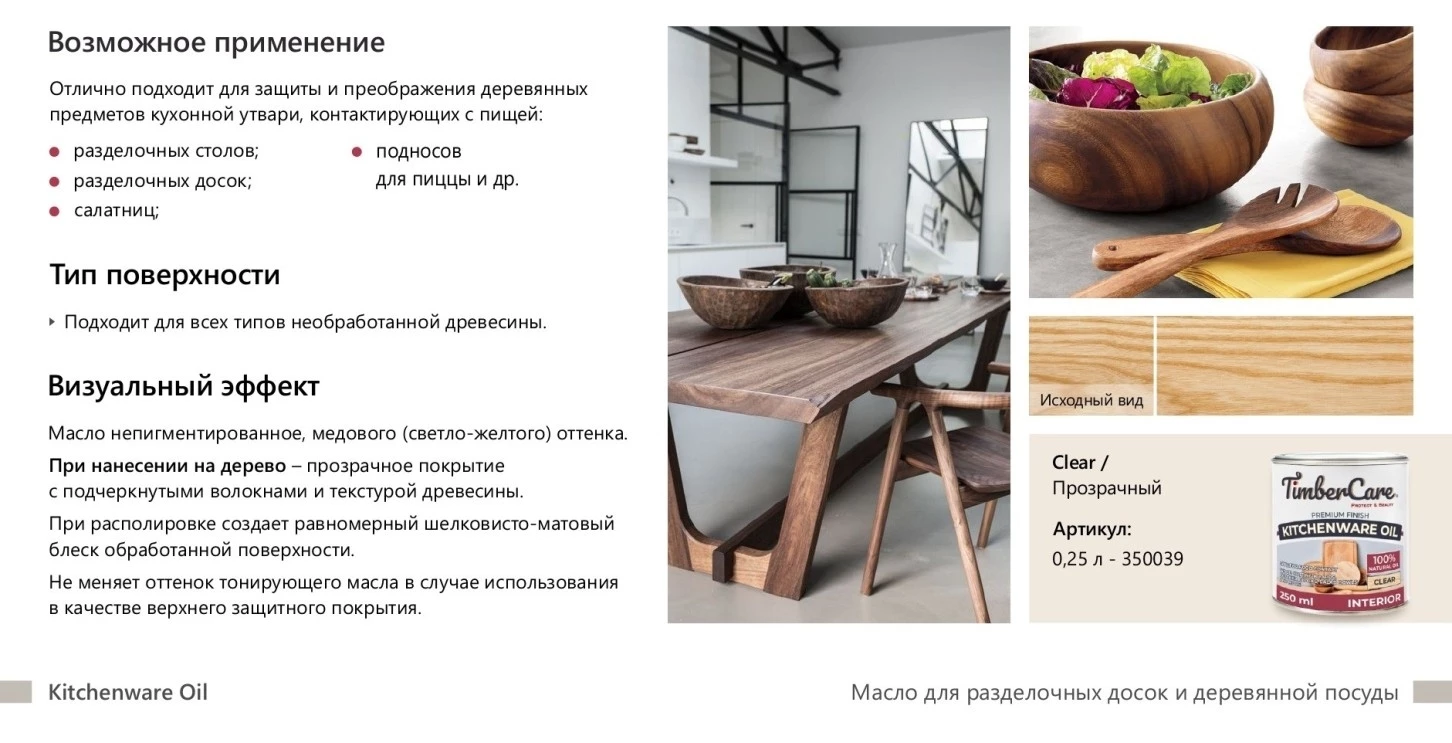 Отлично подходит для защиты и преображения деревянных разделочных столов, разделочных досок, салатниц , подносов для пиццы и других предметов кухонной утвари, контактирующих с пищей.
