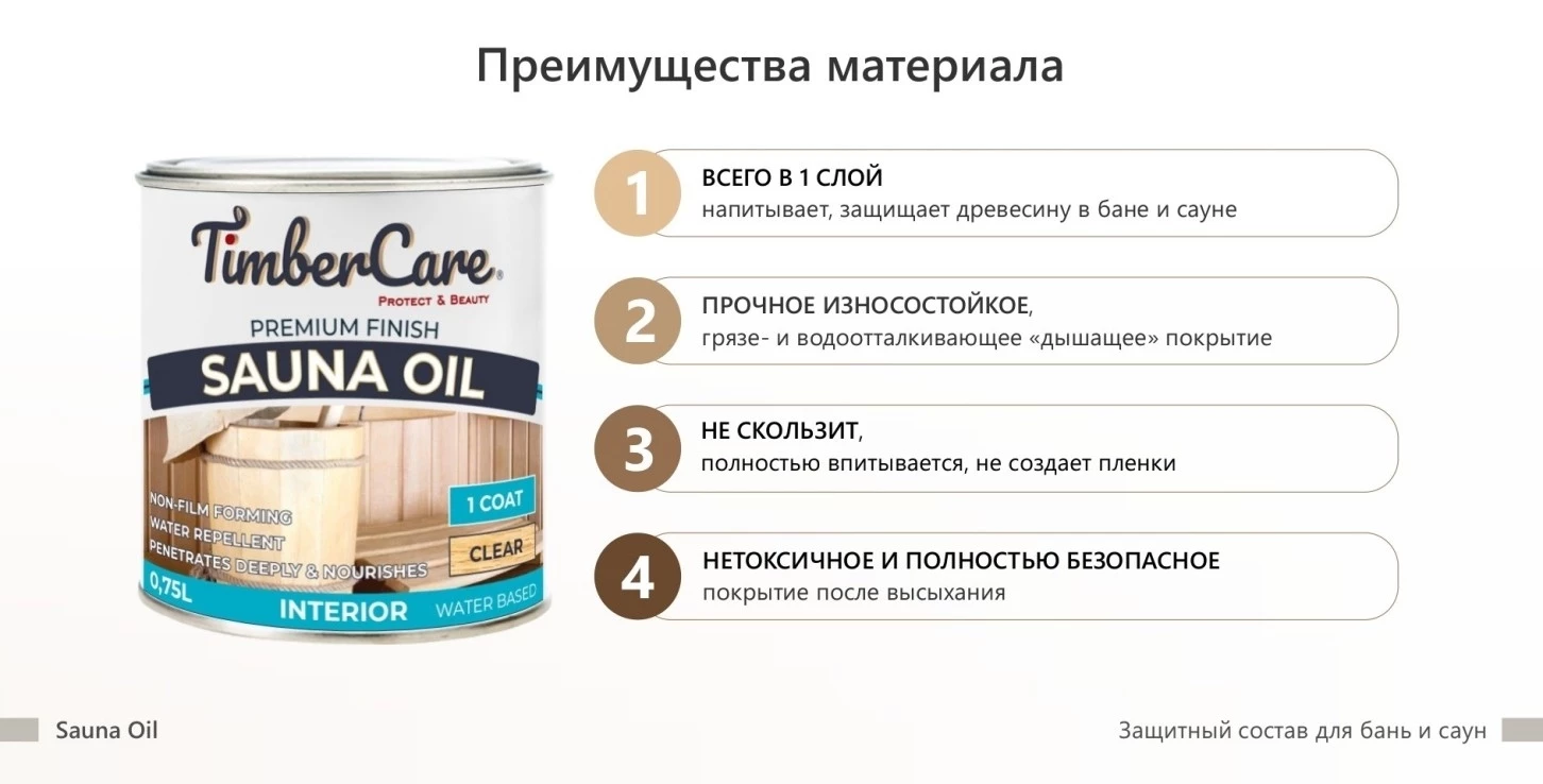 Состав глубокого проникновения, специально разработано для защиты деревянных поверхностей в сауне и бани.