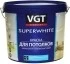 Глубокоматовая краска VGT "Супербелая" представляет собой белую, вязкую, маслянистую на ощупь жидкость. Сухой остаток не менее 55%. После высыхания образует ровную матовую поверхность с белизной не менее 92%. Краска обладает повешенной укрывистостью и светостойкостью (не желтеет в процессе эксплуатации), образует «дышащее» покрытие. Не мелит, поэтому может использоваться как «эконом» вариант для окраски стен. Имеет хорошую адгезию к бетонным, кирпичным, гипсокартонным и оштукатуренным поверхностям. При необходимости краску можно смыть при помощи жесткой щетки и моющих средств.